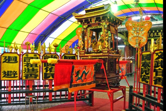另廟外 端午節期間也供民眾躦轎底