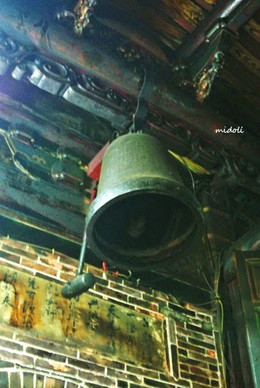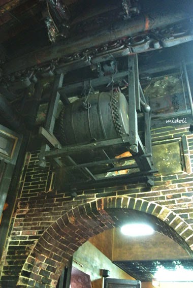 特地拍了廟裡頭懸在屋梁的鐘與鼓